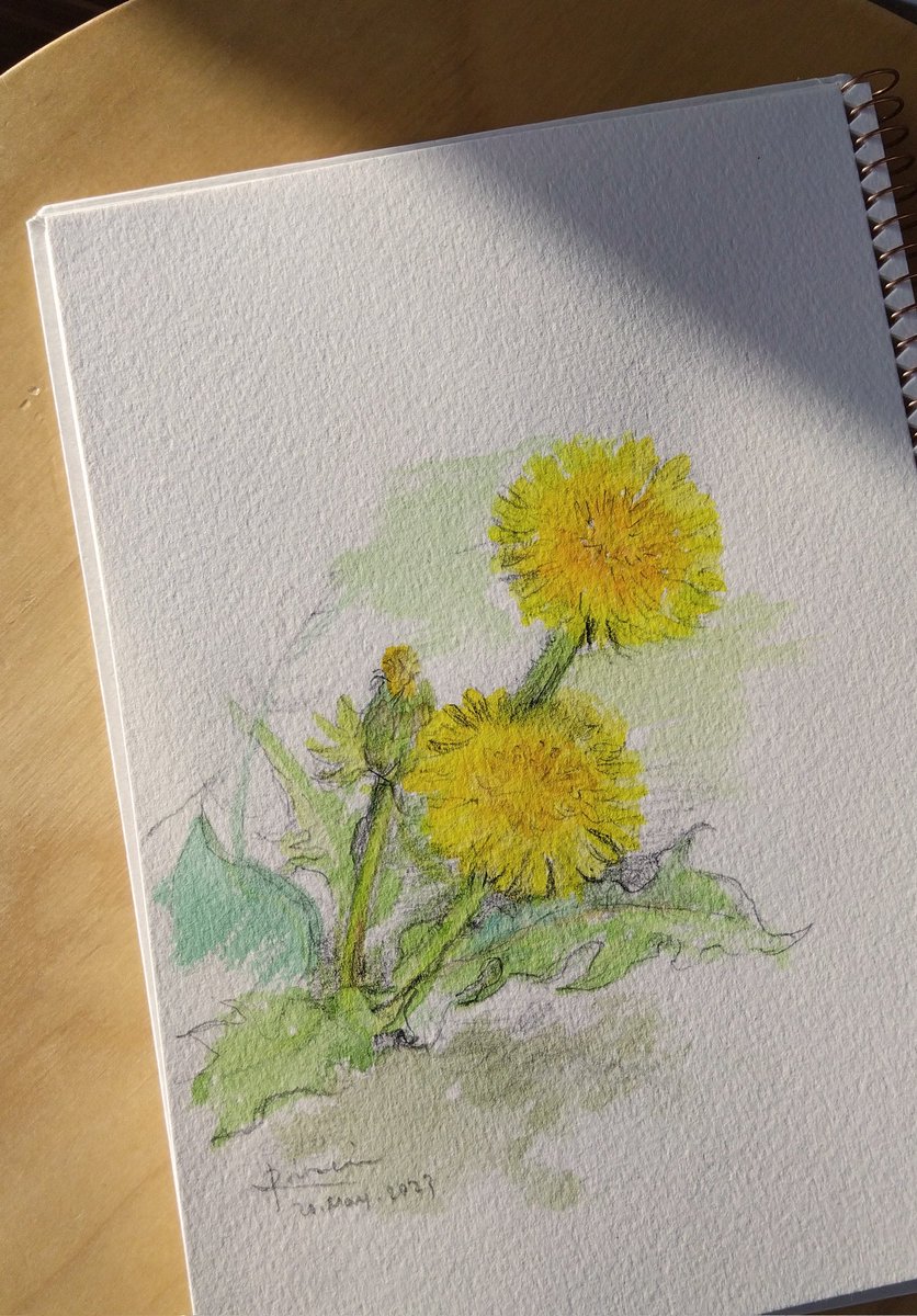 たんぽぽ描いた🖌️ もう朝でも日差しが強い。 #絵 #水彩画