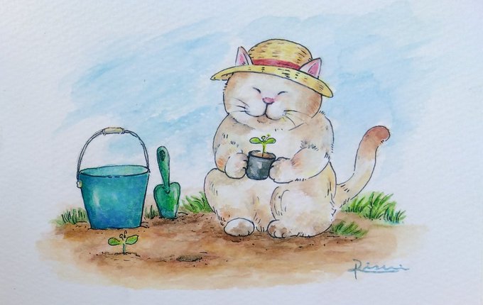 2 14 ちょっとバックの色が薄いのかなぁ〜 と、一昨日から思ってました。 やっぱり薄いかも。 #水彩画 #猫の絵 23/07/17 08:52