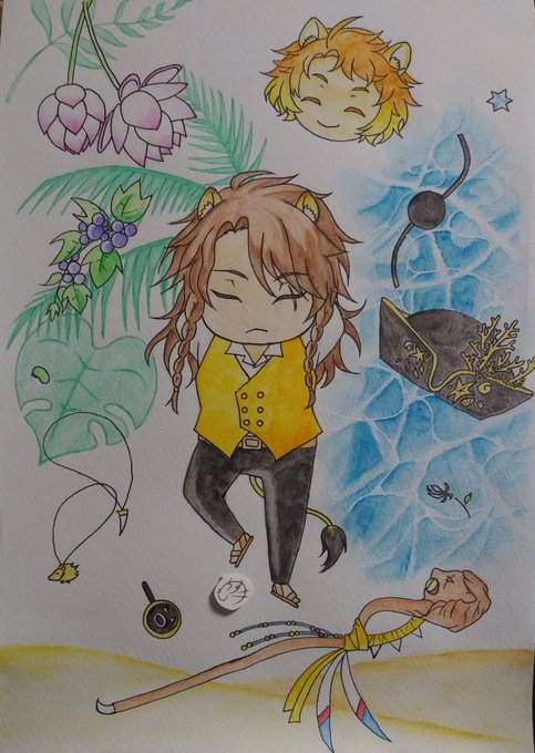 #第4回twstミュシャ企画 だいちゃんの企画でミュシャのモナコ・モンテカルロを参考にチェカ君を描かせてもらいました✨ おじたんにお手紙出す時のチェカ君イメージしました! 上のタグから参加されてる方のとっても素敵イラストが見られるので是非!ご覧下さい💕