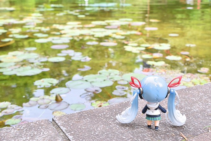 #深夜の初音ミク撮影60分一本勝負 5/28のお題【ファンタジー】 近場で撮影できるところを探したらいいところがありました〜( *´꒳`* ) ファンタジー小説に出てくるお庭みたいなところで、蟹船長をパシャリ(*´艸`)