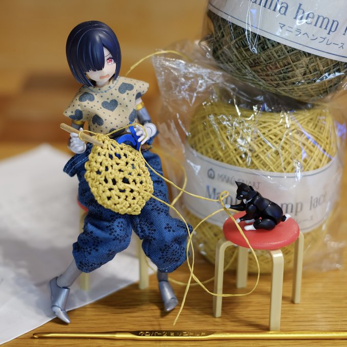 麻のレース糸で編み物練習…🧶 たのしい!けど編み方何も覚えてない! . #メガミデバイス