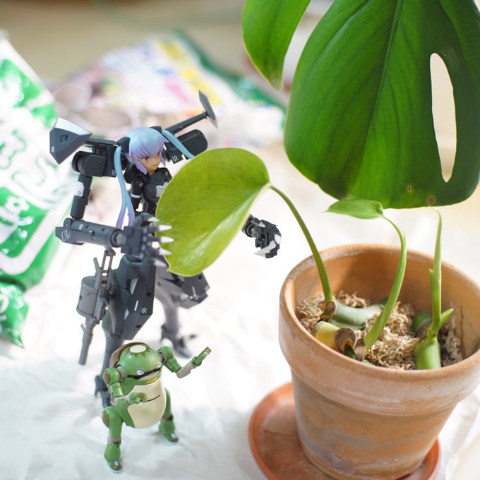 37 148 モンステラの茎伏せに成功しました! &ストラーフちゃんの初仕事!植え替え手伝ってもらいました🪴 . #武装神姫 #メガミデバイス 23/06/10 18:38