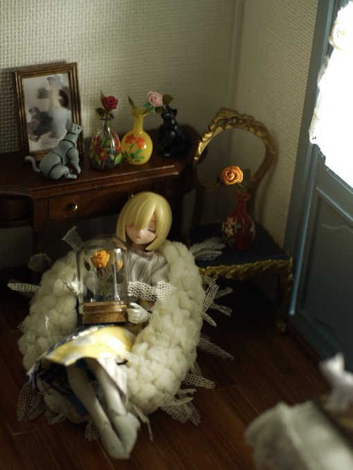 ドールハウスに作ったミニチュアのバラ置いてみました!🌹 . #メガミデバイス