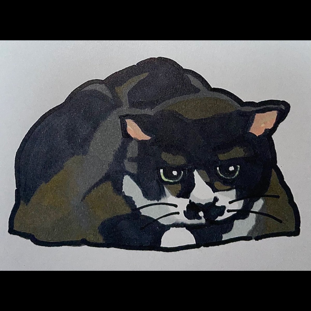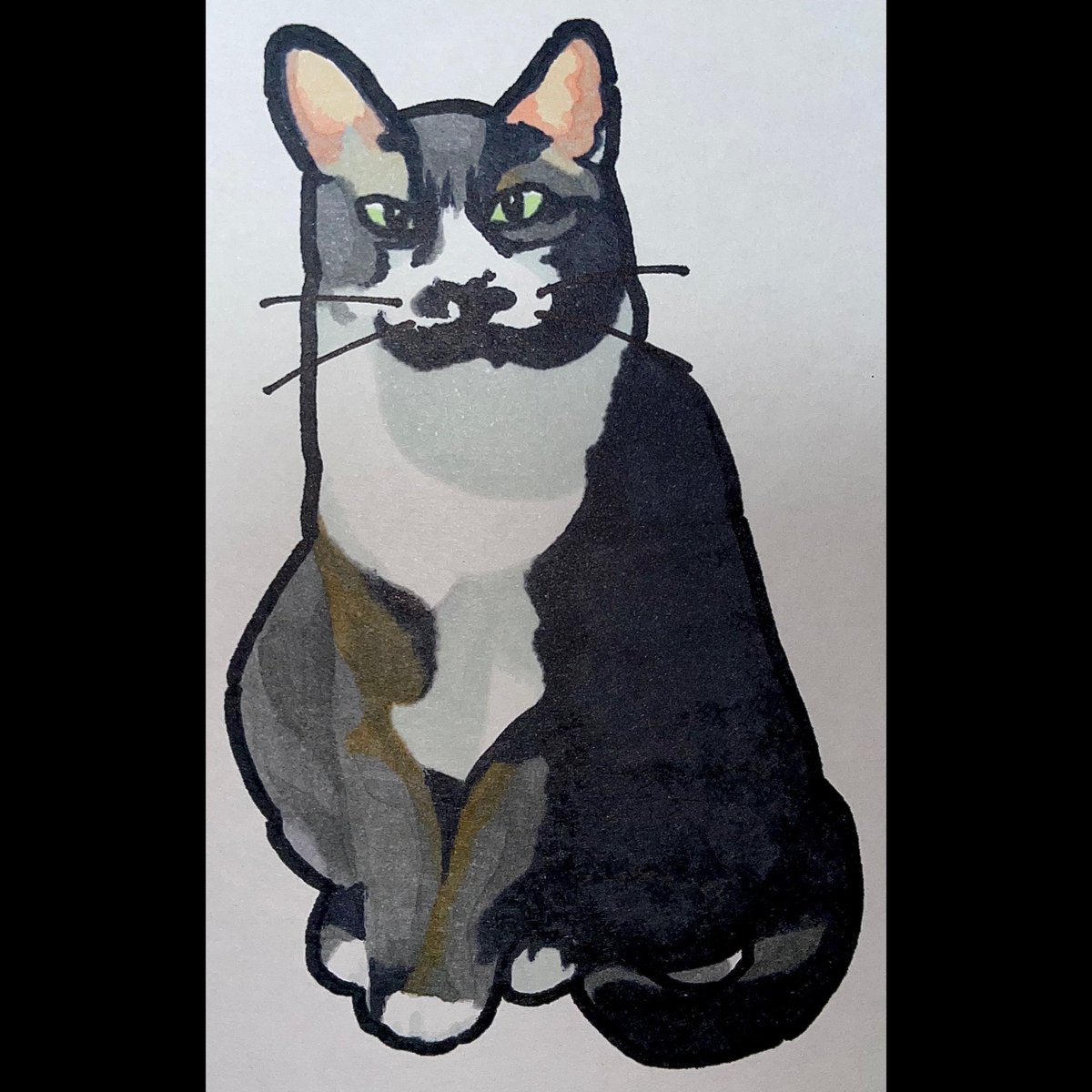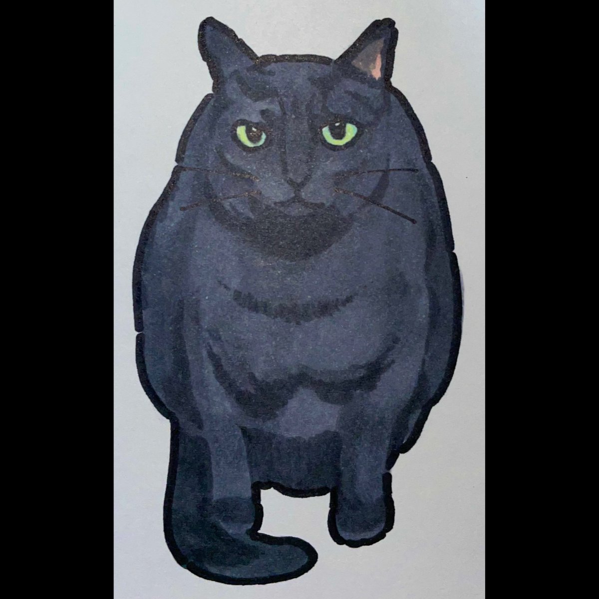 猫描きました @momonanafukuoka さんの オコちゃん(オコ身)🐈⬛🐈⬛🐈⬛ めちゃ可愛くかけた🥰 きゅる目👀最高💕 #猫 #イラスト #猫イラスト #お絵描き好きさんと繋がりたい #猫好きさんと繫がりたい