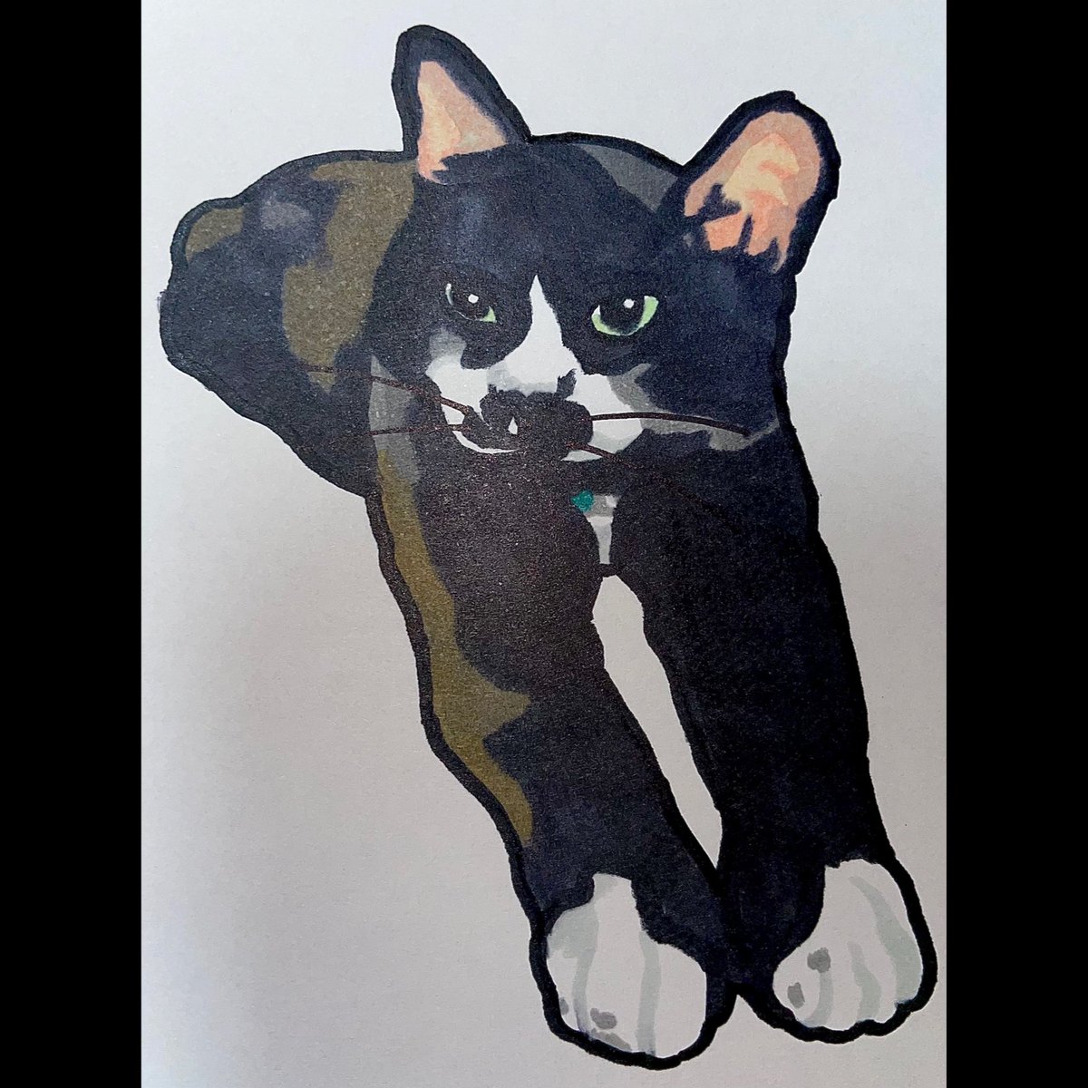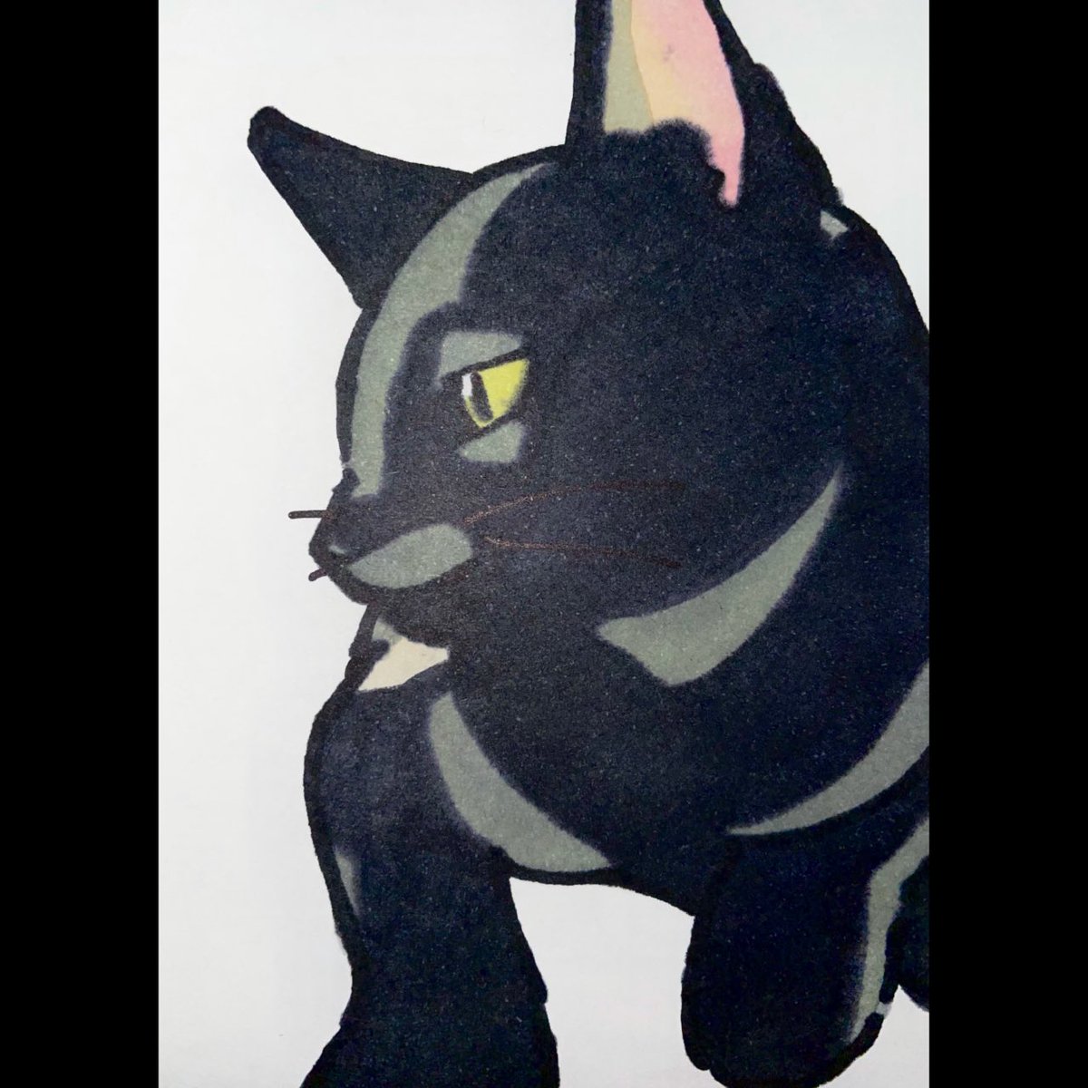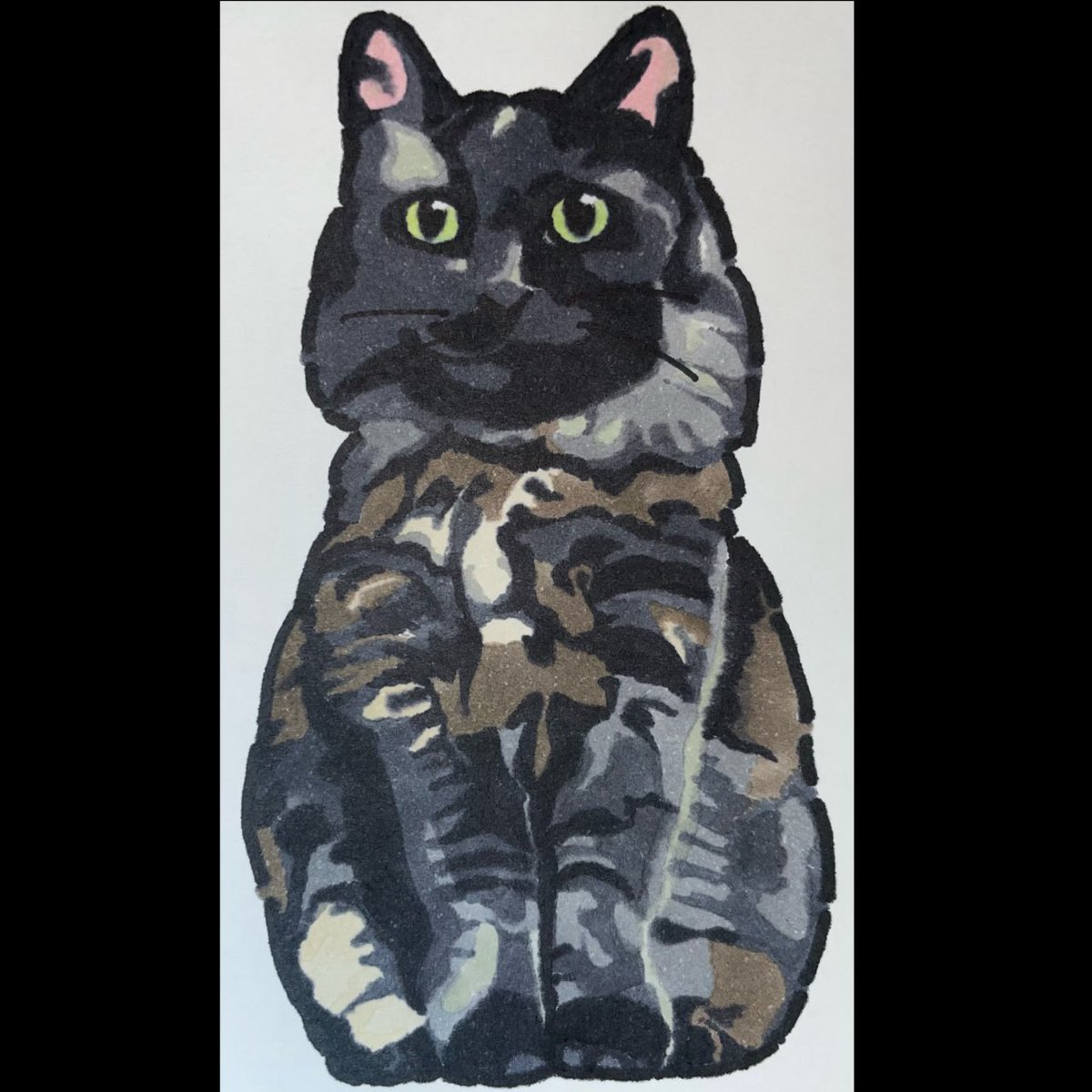 猫描きました @momonanafukuoka さんの オコちゃん(オコ身)🐈⬛🐈⬛🐈⬛ めちゃ可愛くかけた🥰 きゅる目👀最高💕 #猫 #イラスト #猫イラスト #お絵描き好きさんと繋がりたい #猫好きさんと繫がりたい