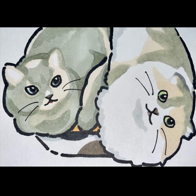 猫描きました @nonosuke_game さんの とろろ(グレー)🐱 らむね(キジ白)🐈 キュルキュルおめめ🥰 可愛くかけました! スキャナーが欲しいなぁ #猫 #イラスト #猫イラスト #お絵描き好きさんと繋がりたい #猫好きさんと繋がりがりたい