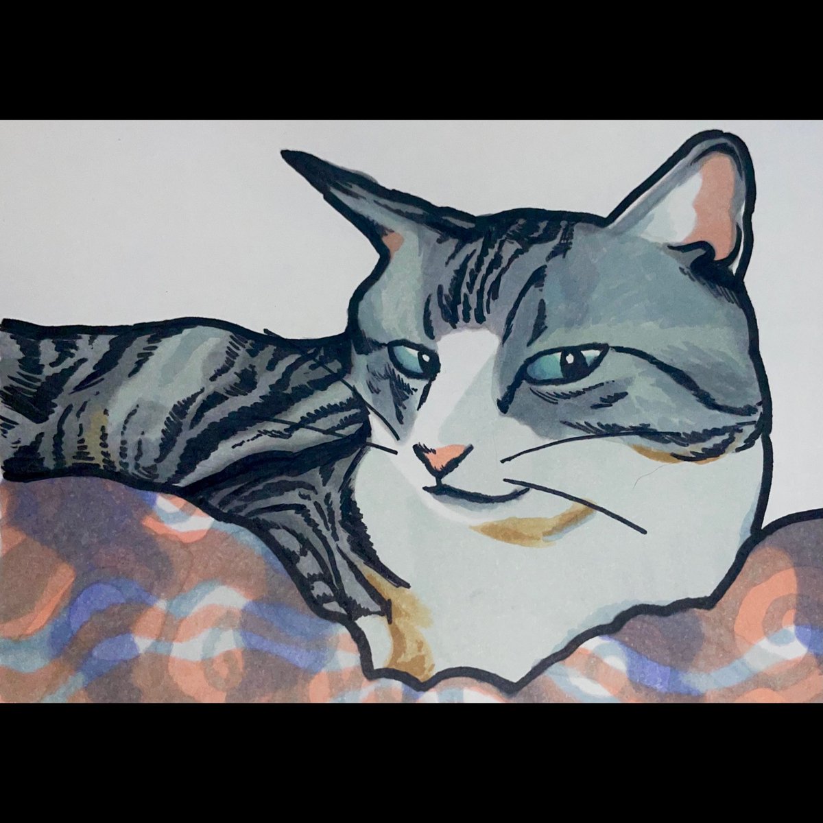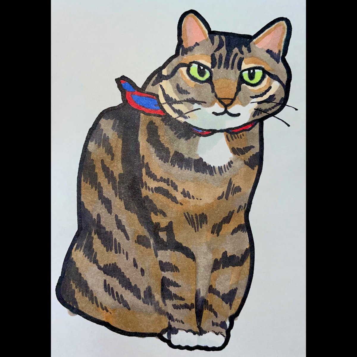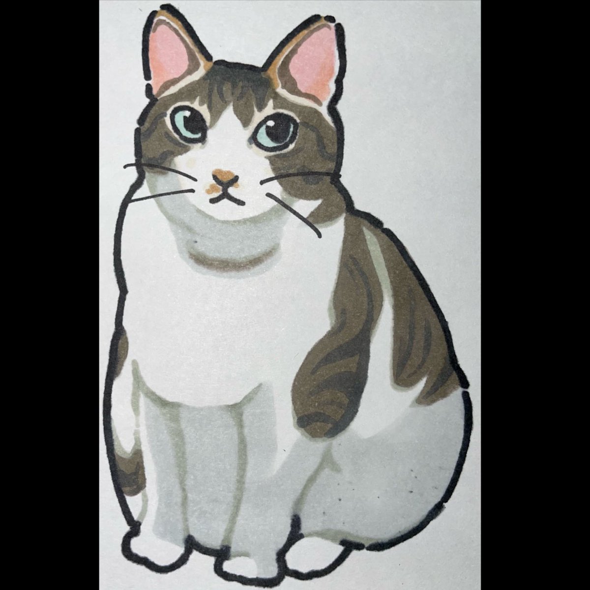 猫描きました @aryuu10 さんの 茶白のサン☀️ なんとも言えない愛くるしいお顔に悶えながら描きました😇 #猫 #イラスト #猫イラスト #絵描きさんと繋がたい #猫好きさんと繋がりたい