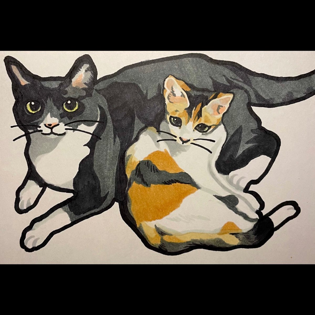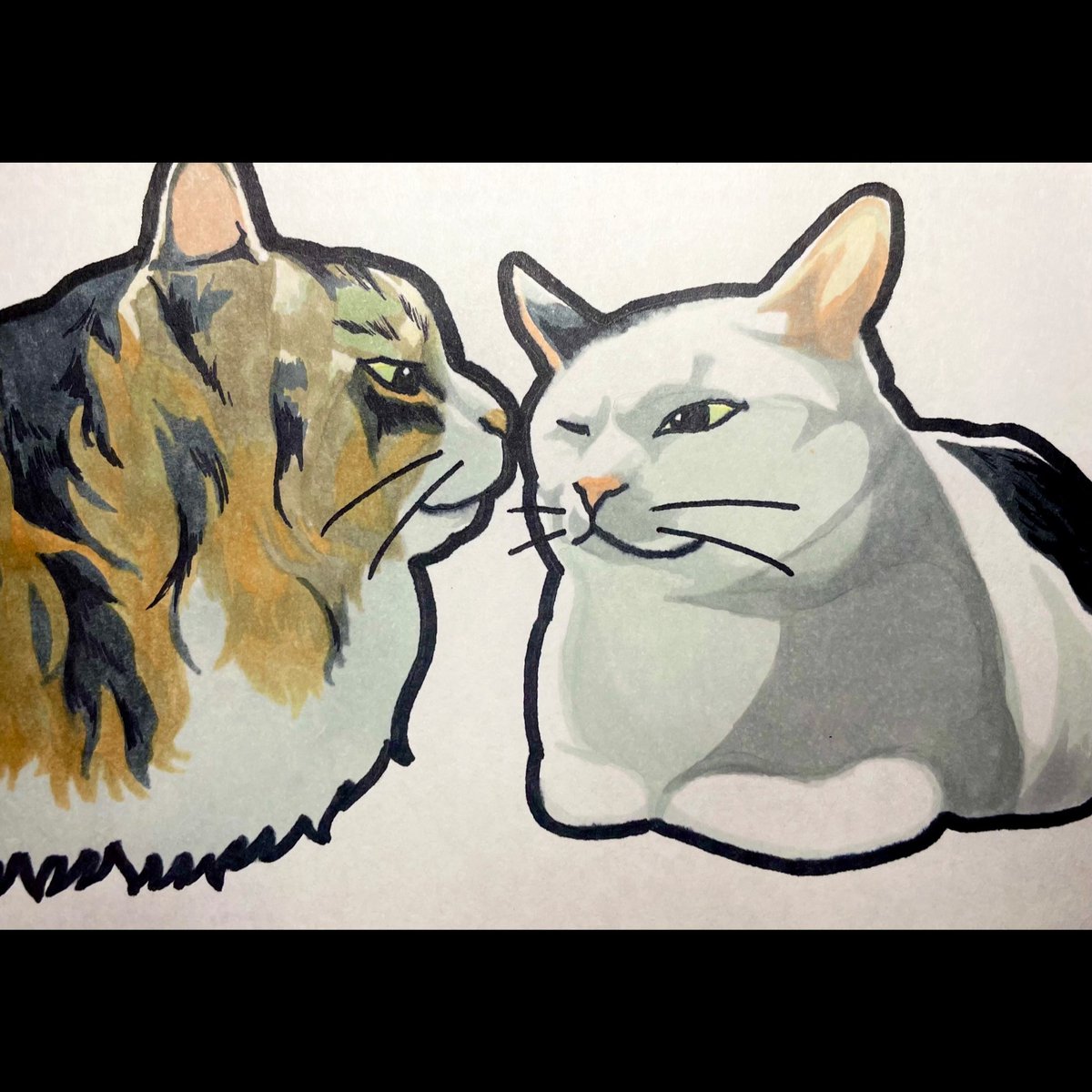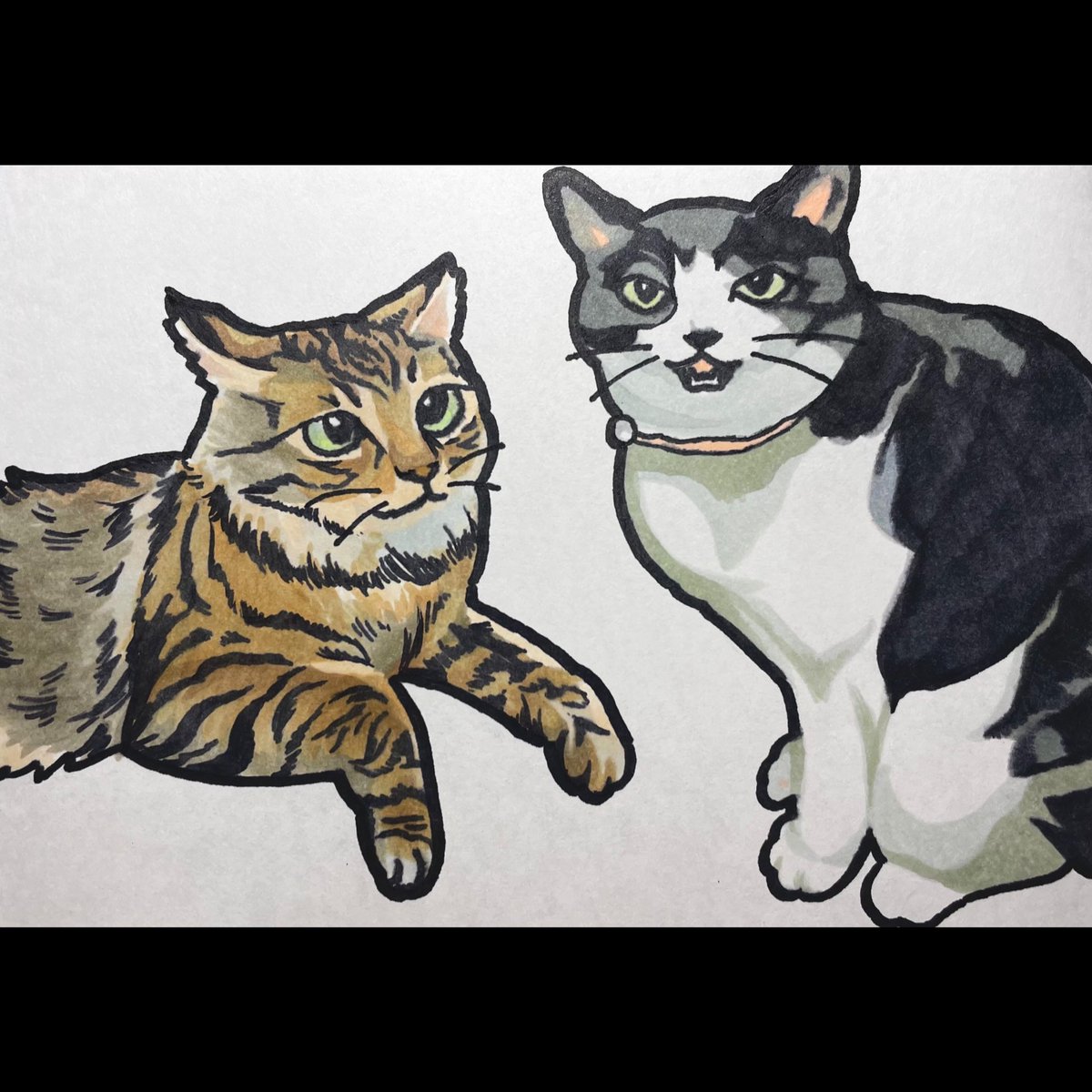猫描きました @2020cat4696 さんの ←くろちゃん🐱 →しろちゃん🐾 美人なおふたりさん❤️ #猫 #イラスト #猫イラスト #お絵描き好きさんと繋がりたい #猫好きさんと繋がりたい
