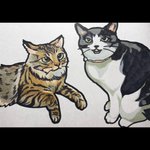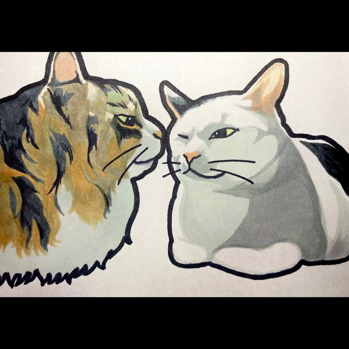 猫描きました @fuusuke1fuusuke さんの ←風太(ふうた)🍃 雷太(らいと)⚡️→ すっごいエモすぎる絵になっちゃいました...フツクシー...✨️ 愛です♥️ #猫 #イラスト #猫イラスト #お絵描き好きな人と繋がりたい #猫好きさんと繋がりたい