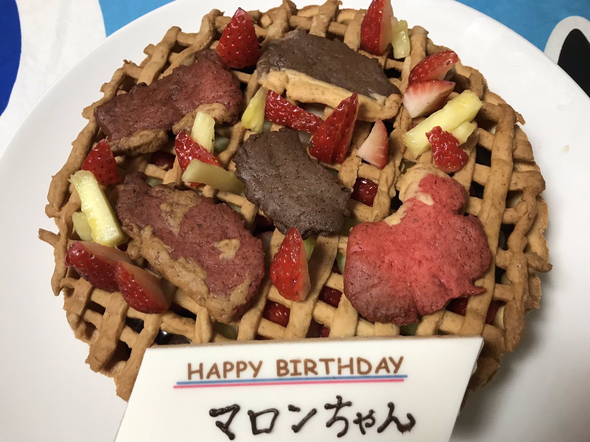 かわいいかわいいマロンちゃん誕生日おめでとう\\\└('ω')┘//// 今年はケーキ作れてないけど気持ちは変わらず! ハッピーバースでぃ!! (画像は過去に作ったマロン誕ケーキなど) #柳原麻侖生誕祭2021