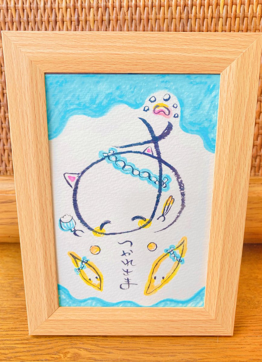 『 サムくんと海に行ってきます♪ 』 #イラスト #で夏遊び ✨🏝 #筆ペン #おうち時間 #みんなのゆる絵 #はちわれ #ねこ #猫好きさんと繋がりたい