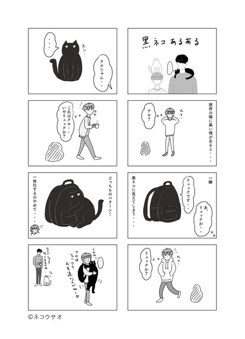 1 14 僕と俺とクロとシロ 16「黒ネコあるある」 クロは黒リュックを友達だと認識しているようです。。 #日常漫画 #漫画 #猫漫画 #猫 #黒猫 #猫のいる暮らし #保護猫 #保護猫と暮らす #創作漫画 #ほのぼの漫画 #ほのぼの #イラスト #漫画が読めるハッシュタグ 21/11/19 11:55