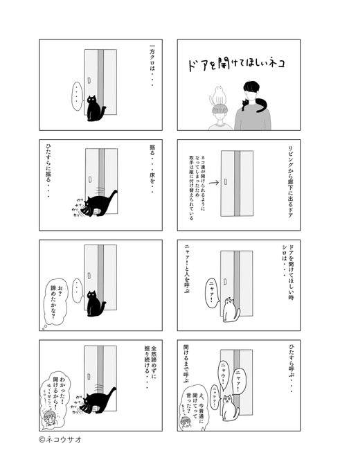 「ドアを開けてほしいネコ」 クロは決して諦めない。。。 #日常漫画 #漫画 #猫漫画 #猫 #黒猫 #猫のいる暮らし #保護猫 #保護猫と暮らす #創作漫画 #ほのぼの漫画 #ほのぼの #イラスト #漫画が読めるハッシュタグ