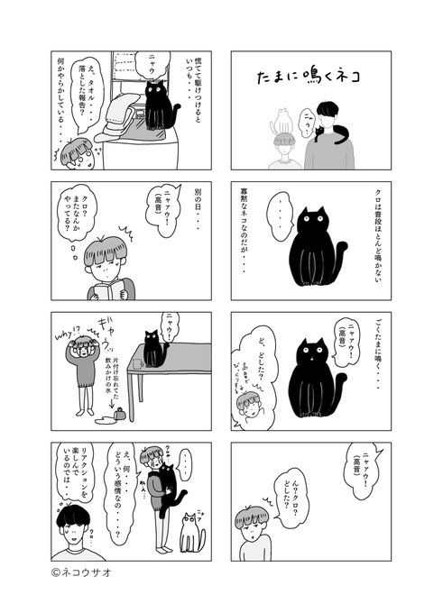 「たまに鳴くネコ」 どういう感情なのか。。。? #日常漫画 #漫画 #猫漫画 #猫 #白猫 #黒猫 #猫のいる暮らし #保護猫 #保護猫と暮らす #創作漫画 #ほのぼの漫画 #ほのぼの #イラスト #漫画が読めるハッシュタグ #猫がいる暮らし