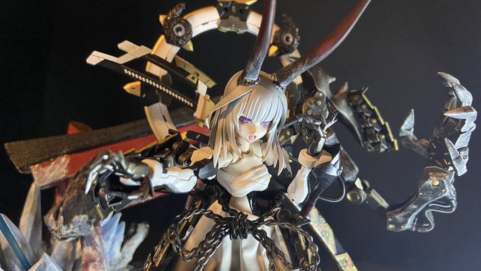 111 322 百鬼夜行 牛鬼~拠点強襲型試験機~ 完成👨🔧 アリスギアifストーリーとして製作した大嶽丸に続いて百鬼夜行シリーズ2体目です。 大嶽丸に敗れた相河愛花が拐われ、その後合流した妖の軍勢に改造された姿。 ヴァイスの残骸を利用して造られた装備、通称ハデスギアを纏う。 #メガミデバイス 続く⤵︎ ︎ 22/08/31 17:41