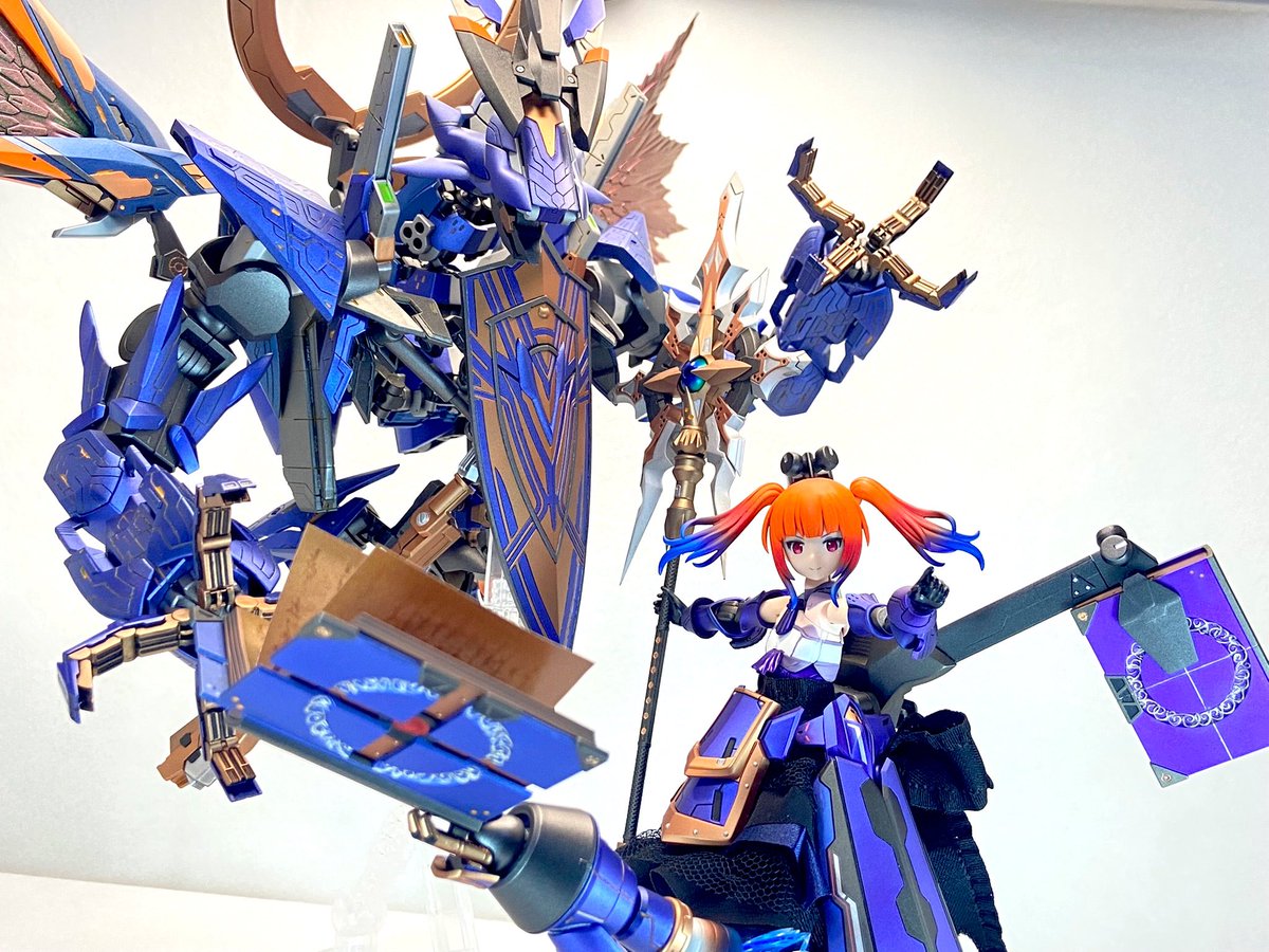 70 196 Tiny Garden クレネ&ハイドレンジア 完成しました🙏 意志を持つ機械獣を異界より召喚することができる一族の当主の一人娘、クレネ。彼女の盾を媒介に召喚される機械獣ハイドレンジア。 世間知らずお嬢様召喚士とそれをフォローする召喚獣という感じのふたりです。 リプに続きます⤵︎ #メガミデバイス 22/06/30 17:20