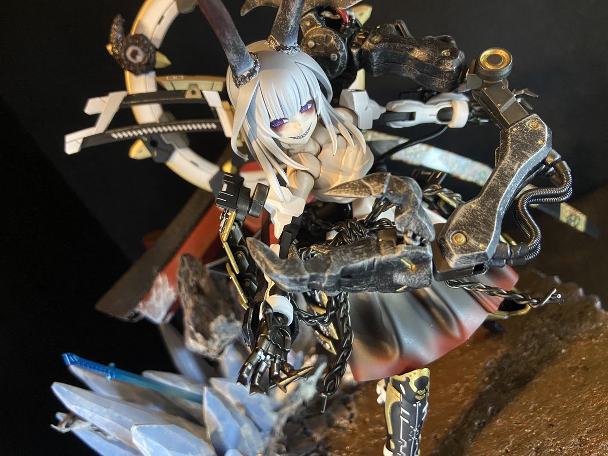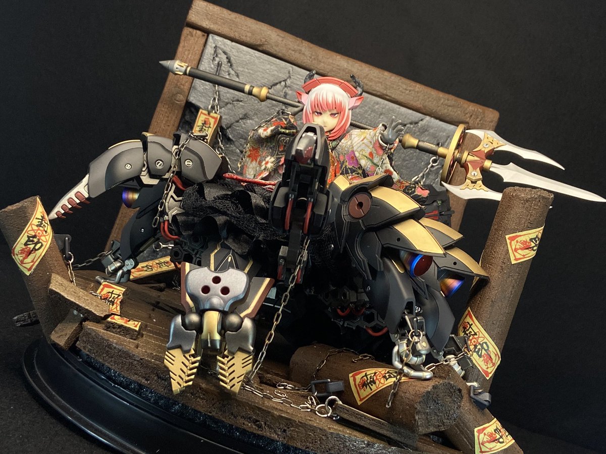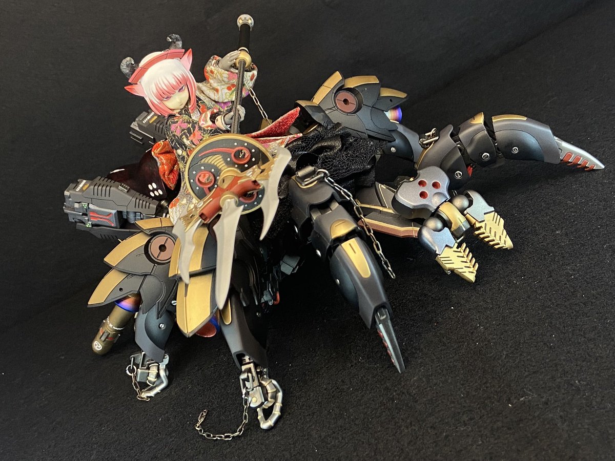 百鬼夜行 牛鬼~拠点強襲型試験機~ 完成👨🔧 アリスギアifストーリーとして製作した大嶽丸に続いて百鬼夜行シリーズ2体目です。 大嶽丸に敗れた相河愛花が拐われ、その後合流した妖の軍勢に改造された姿。 ヴァイスの残骸を利用して造られた装備、通称ハデスギアを纏う。 #メガミデバイス 続く⤵︎ ︎