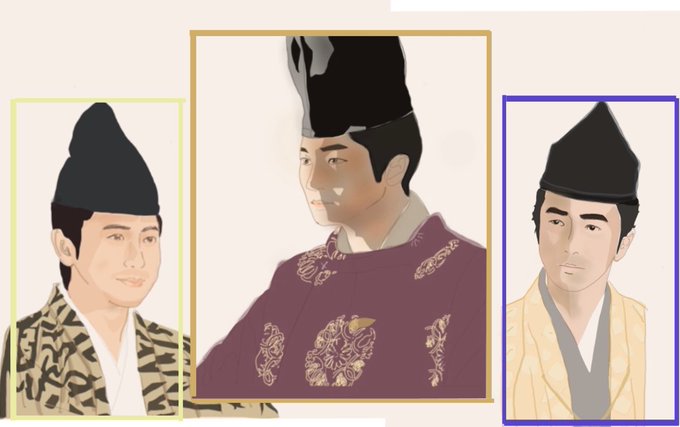 まだまだ #麒麟がくる と #麒麟絵 やってます。 足利義輝(向井理)とお側衆の二人。細川藤孝(眞島秀和)、三淵藤英(谷原章介)。 この三人、揃って涼やかで目の保養でした〜。ありがたやー。