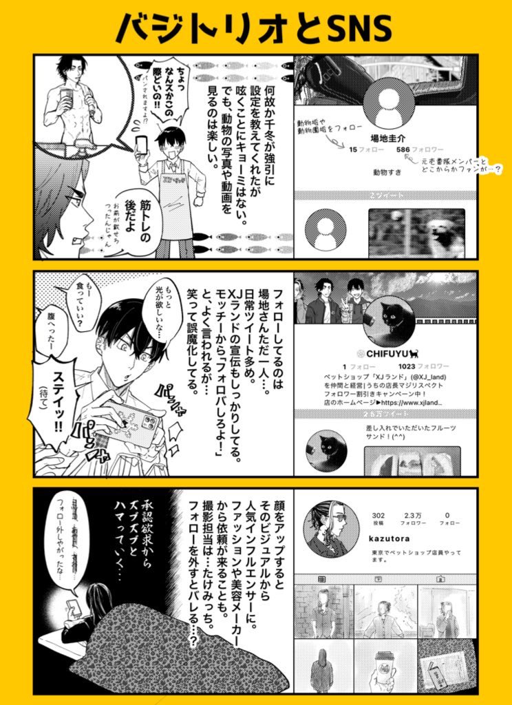 ペットショップ軸のバジトリオ本 在庫がなかった種類の再販しました! 予約開始しています! #1▶ec.toranoana.jp/joshi_r/ec/ite… #2▶ec.toranoana.jp/joshi_r/ec/ite… #3▶ ec.toranoana.jp/joshi_r/ec/ite… フルカラーイラスト集▶ ec.toranoana.jp/joshi_r/ec/ite… 1はストーリー 2と3は短編集になってます🐾໊