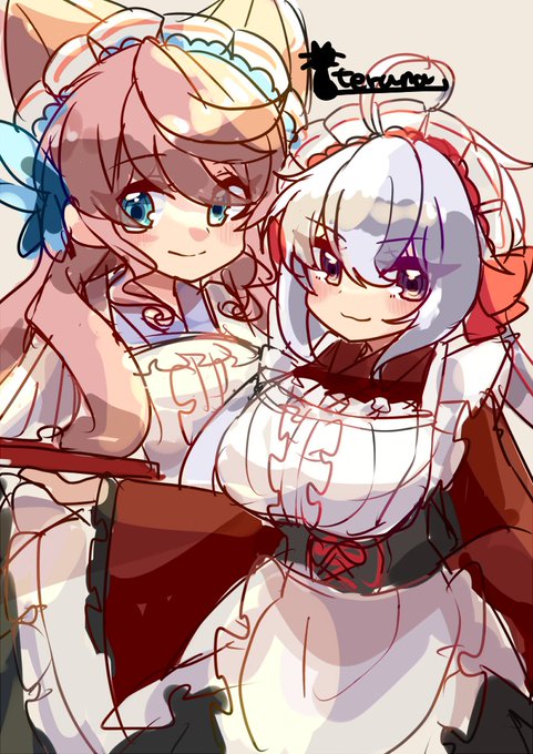 169 487 シンフォギアのマリアさんとクリスちゃんに和メイド着てほしい願望の落書き 23/04/01 21:38