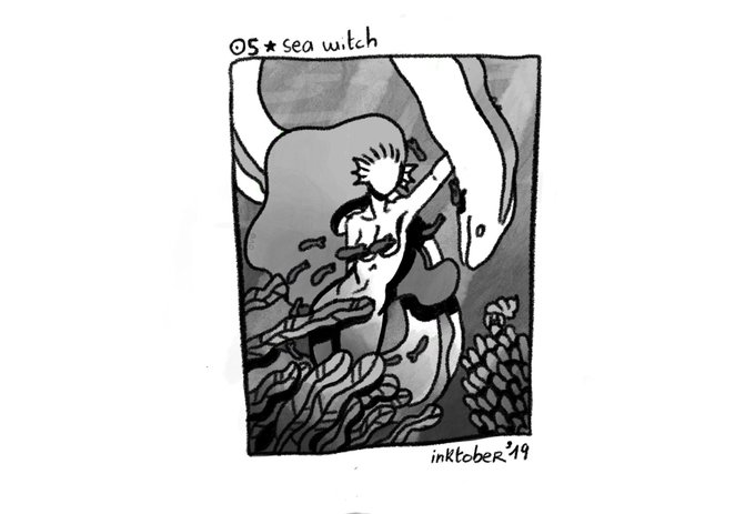 Day 5 - Sea Witch 🌊🐠 Following @neevok Witchtober list 🧙♀️ #inktober #Inktober2019 #neevoktober