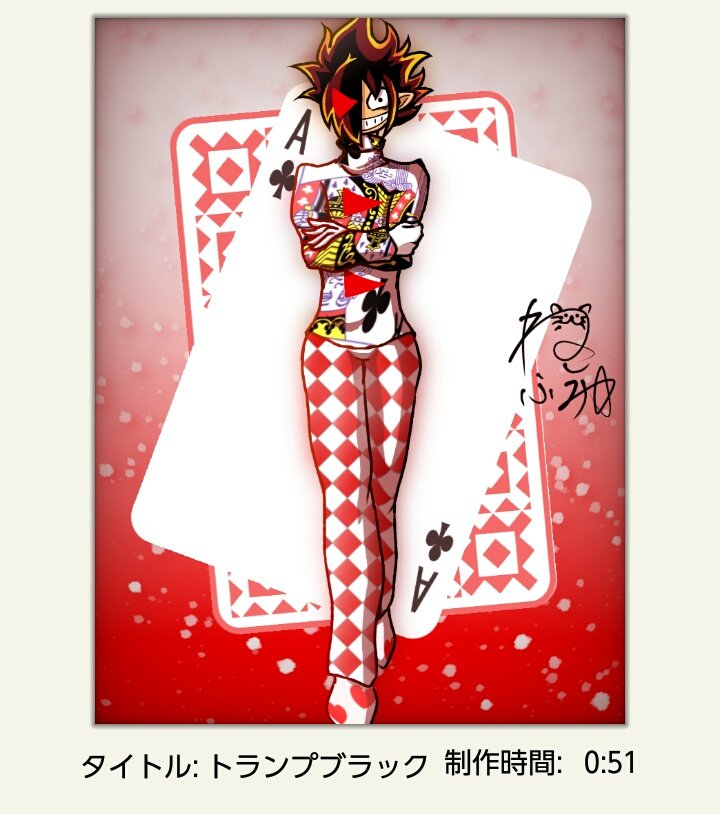 4 39 #プロットアニメファンアートワンドロ 9分余っちゃったけど完成!トランプ柄の服着たブラックです(❁´ω`❁) 21/02/13 21:00