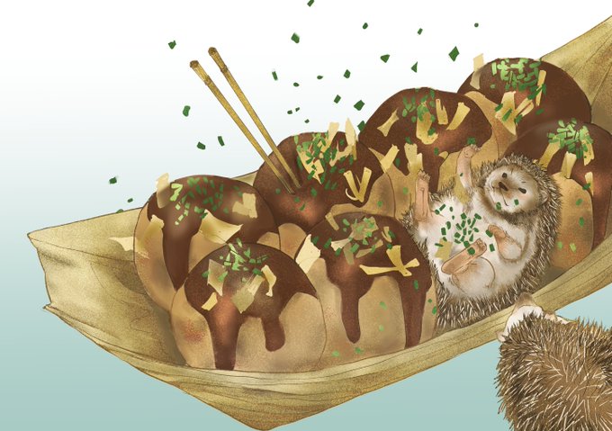 食ってみろ!🐙 #イラスト #ハリネズミ #たこ焼き