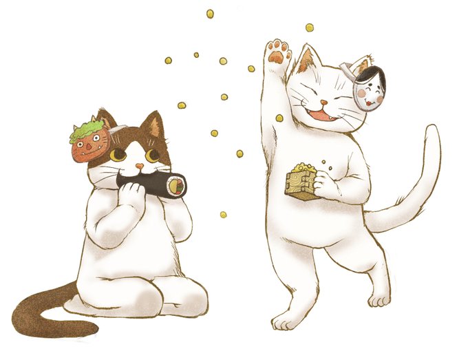 部屋中に豆を撒きまくってる横で南南東を向きながら巻きずし食べる行事って、よく考えると凄いなと思う。 ac-illust.com/main/detail.ph… イラストACに載せてます。 #イラストAC #節分 #猫