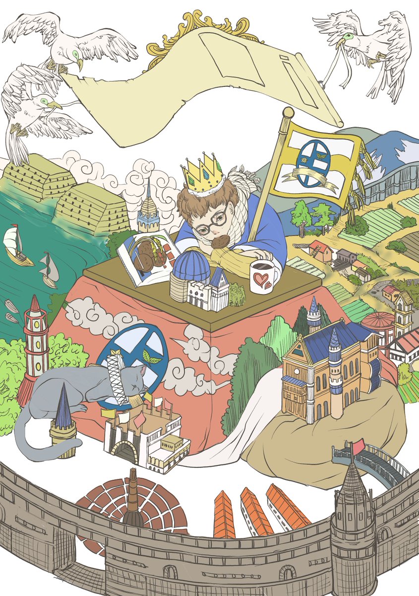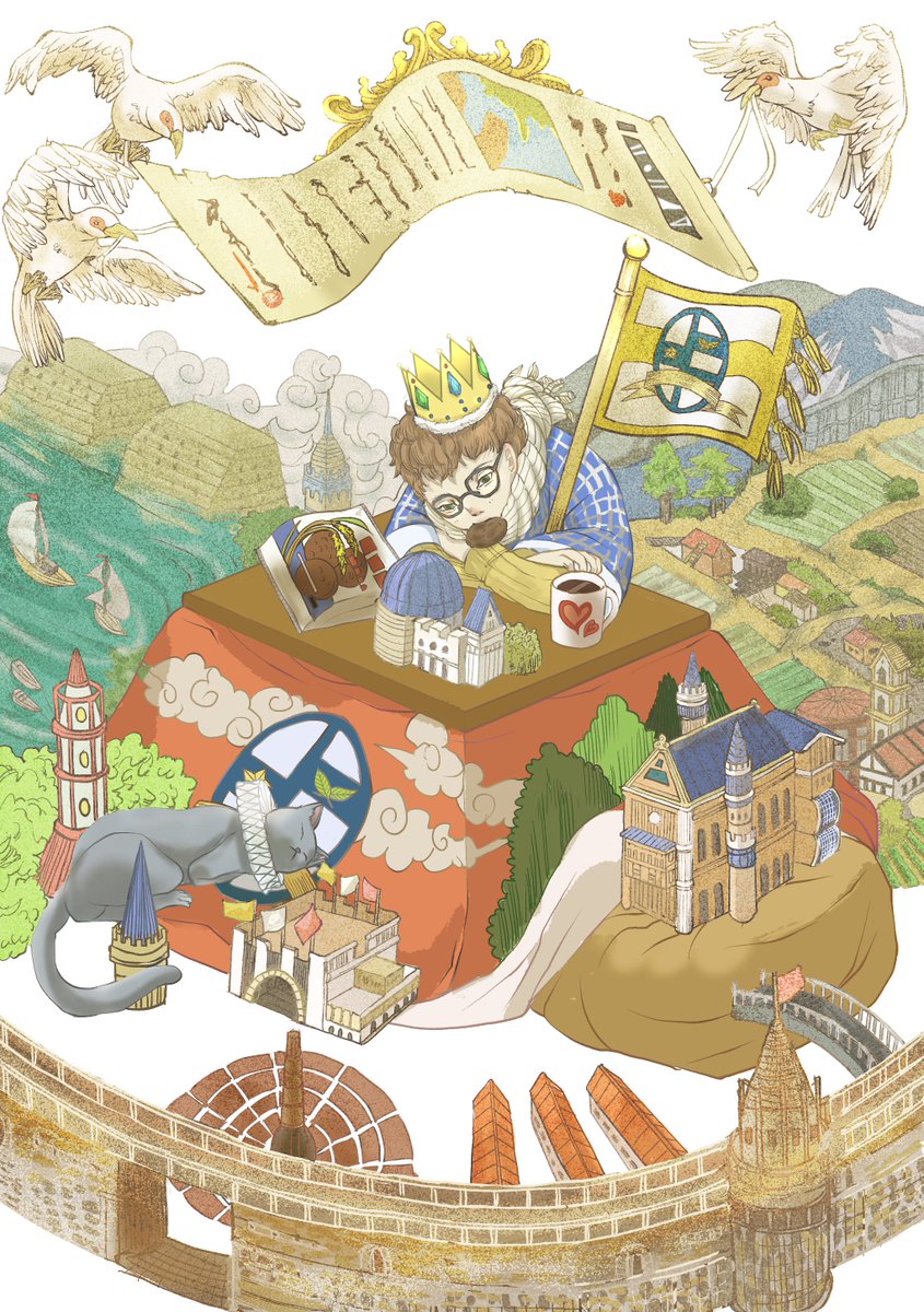 10 100 こたつ王国 ラフ (こたつに入った自分を中心に国家が繁栄していくので、もうこたつから出る必要がなくなる。多分。) #イラスト 23/02/24 20:03