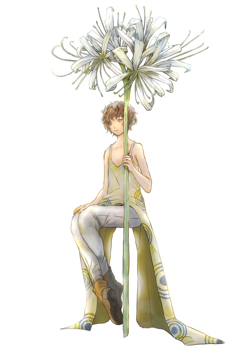 白い彼岸花(空気椅子)完成。 #イラスト #illustration #曼殊沙華