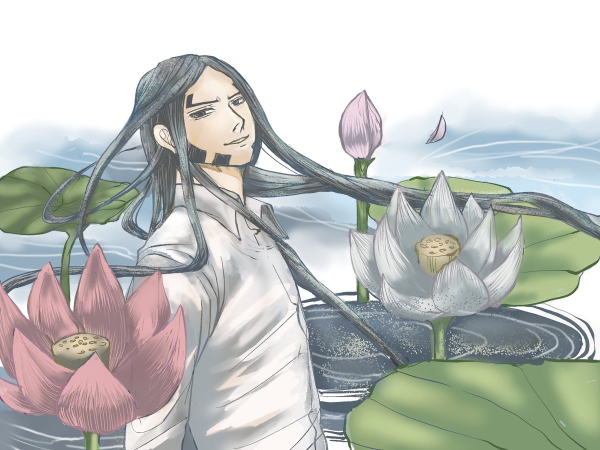 桃の花と宇佐美上等兵 (ワンドロで描こうと思いましたが、3時間かかりました) #ゴールデンカムイ #宇佐美 #イラスト