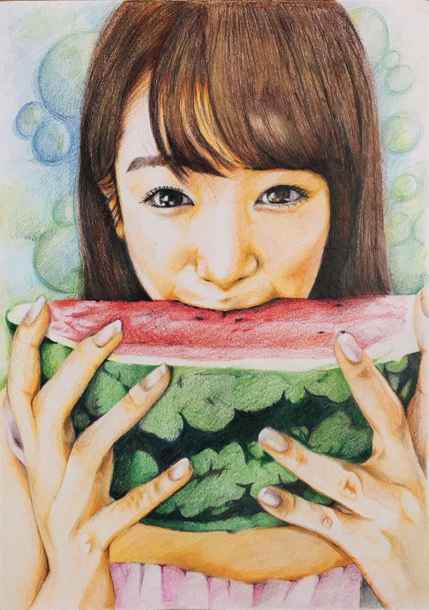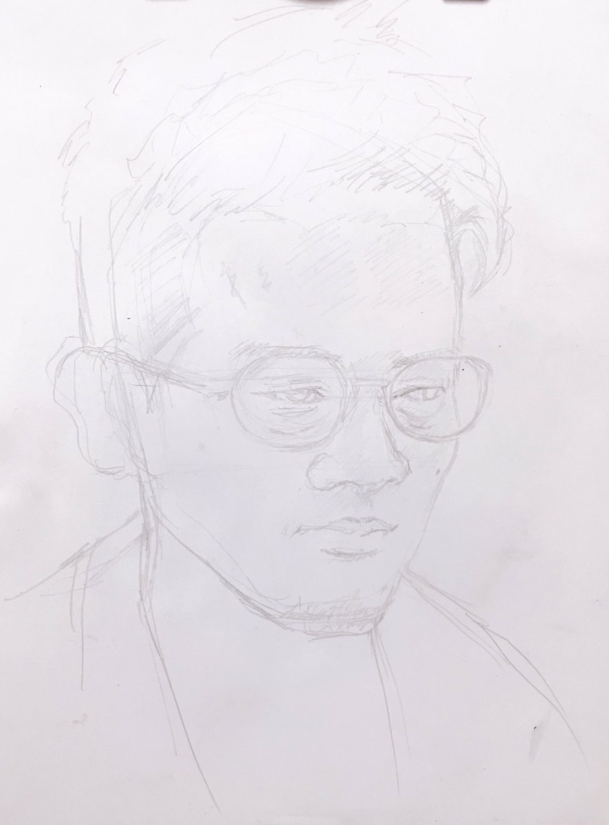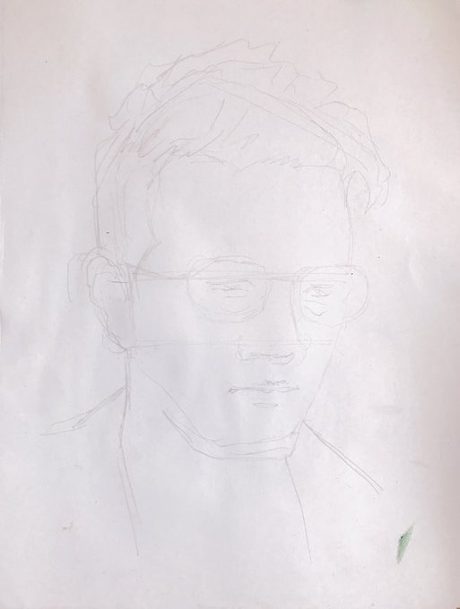 私の場合、大体Hや2H、Fぐらいの濃さの鉛筆で全体の構図をザッとバランスを見ながら描きます。顔に十字の線を引いたりして漫画やデッサンの描き方に近いですが美術の基礎知識もほぼありませんので適当です😅 #鉛筆画 #模写 #絵描きさんと繋がりたい