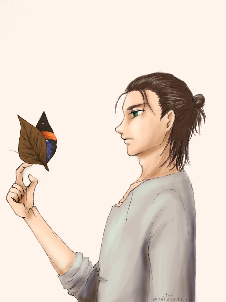 #エレン版深夜の真剣お絵描き60分一本勝負 お題「枯葉」 遅刻参加です。 2021/11/17 9:00〜10:15 コノハチョウの動画がTLに流れてきて、素敵だったので☺️🍂 枯葉を散らしたかったけど、時間切れ…