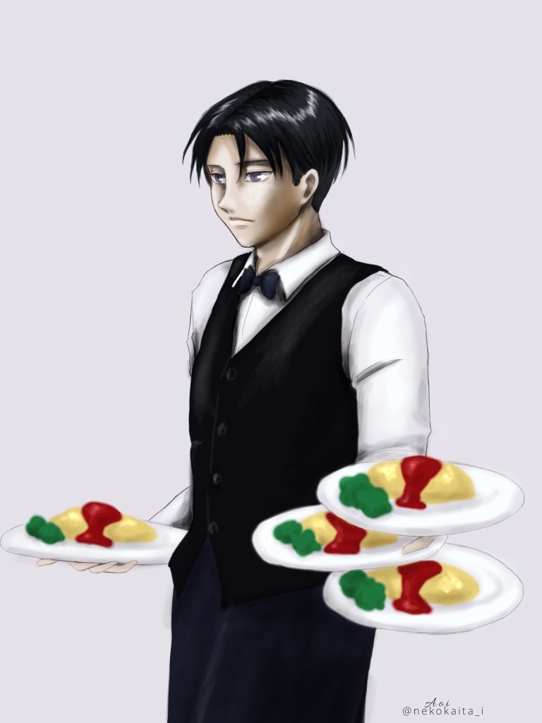 #リヴァイ版深夜の真剣お絵描き60分1本勝負 @60Levi お題「ウェイター」 フライング参加です。 2021/11/28 10:30〜11:45 サイゼでバイトしてたことがあるんですけど、 この持ち方を練習して…重いし、熱いし、結構大変だったな…🍴