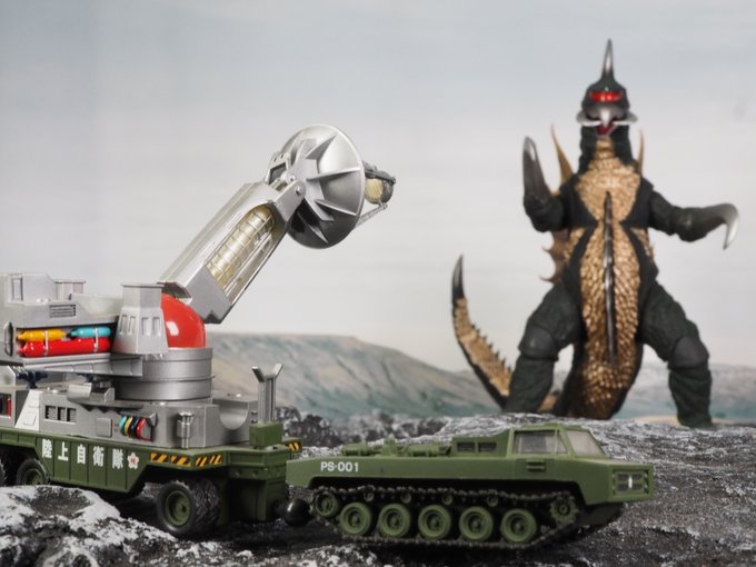 #夜のフィギュア撮影会 お題 『フリー』 ゴジラといえば、やはりメガロキックですよね。 ゴジラとジャガーでパンチパンチパンチ! #ちいさな巨大特撮 #ウルトラアーツ #オモ写 #フィギュア撮影友の会 #シンゴジラ