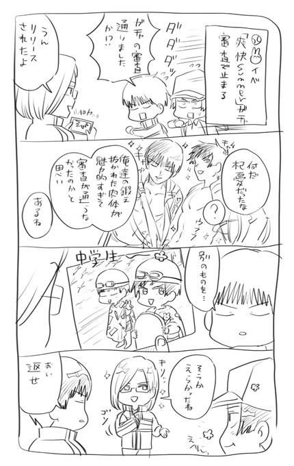 37 312 全国大会GS新刊2冊目サンプル『再録本少年図鑑キラッ』今まで出した本の再録本です。 ・中学生にバイトはまだ早いかな ・序章と宴 ・ミニぶい ・ミニぶい2 ・バンドはじめました の5冊入ってます。基本ギャグなので楽しく読めると思います!おまけ漫画もあります!よしなに~↓サンプル 23/08/06 21:36