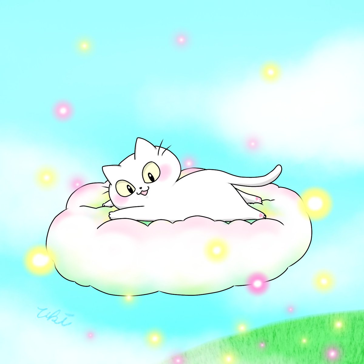 🐱くもの上でお昼寝にゃ~☁✨💕 #ねこイラスト #猫イラスト
