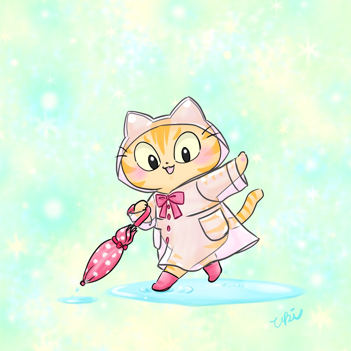 🐱雨の日もオシャレで気分を上げるのにゃ☔🎀💖💗 #ねこイラスト #猫イラスト