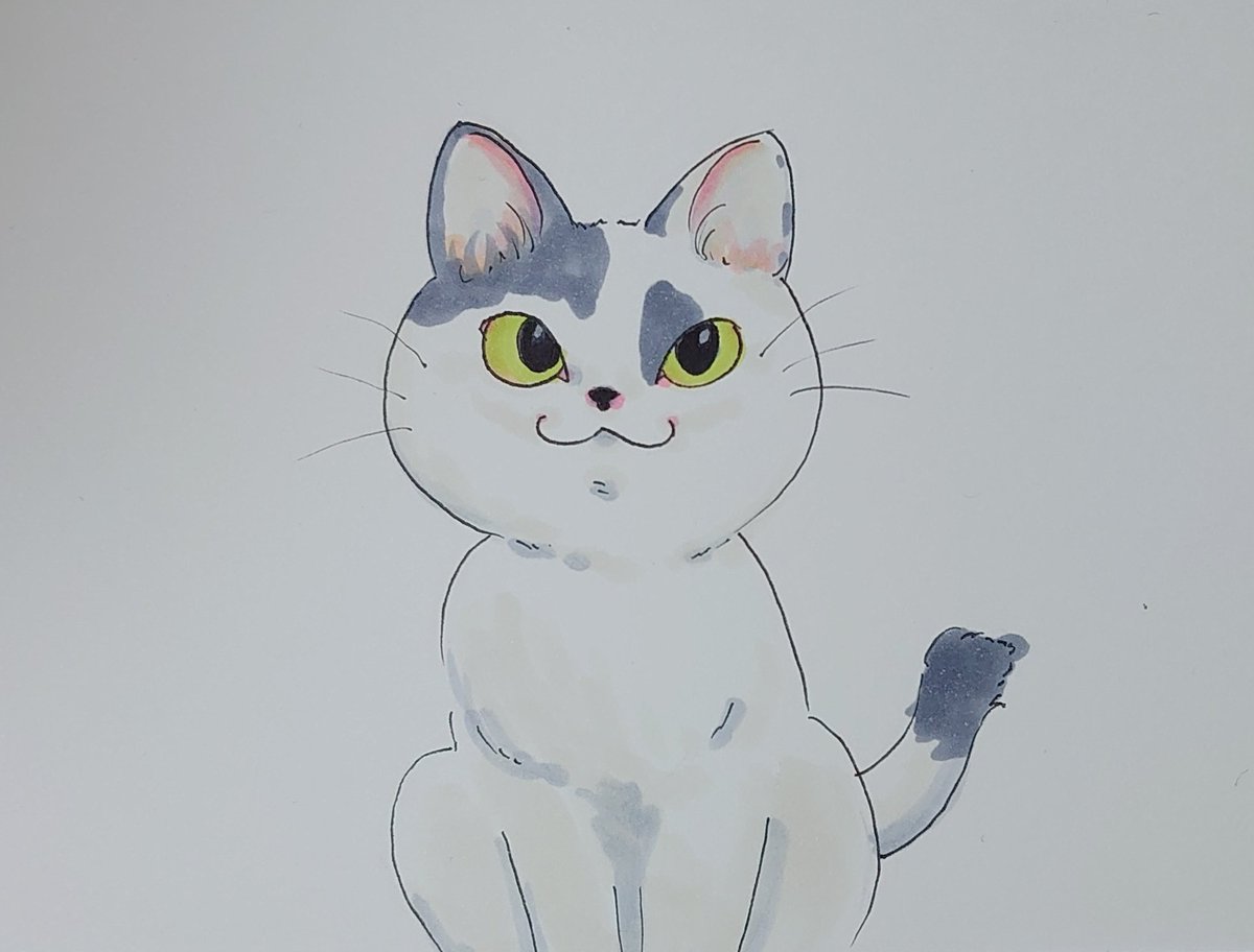 アナログは色塗りが苦手なのです🥲 #猫イラスト #ねこイラスト