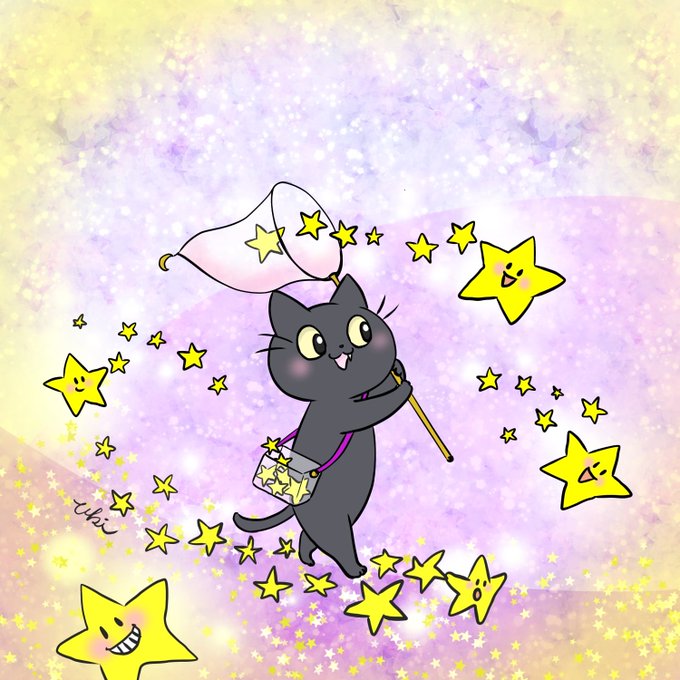 🌟🐱星屑集めにゃฅ"✨ #猫イラスト #ねこイラスト