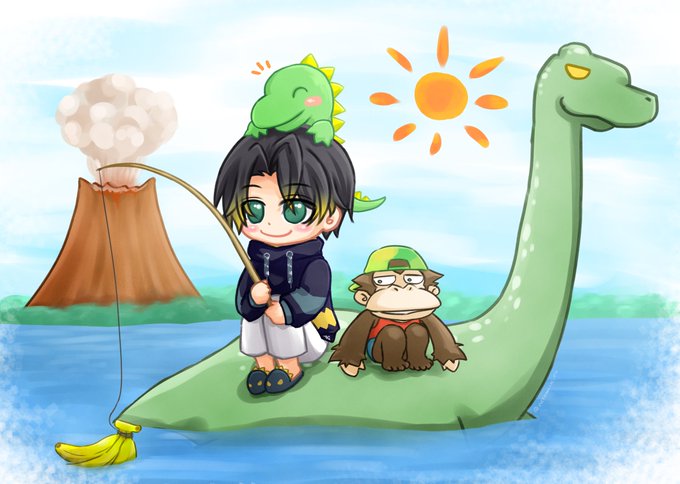 6 25 海の日に間に合わなくて懺悔🙇♀️ ということで、暑中お見舞い申し上げます🎐 #伯物館 #かん君 22/07/19 02:06