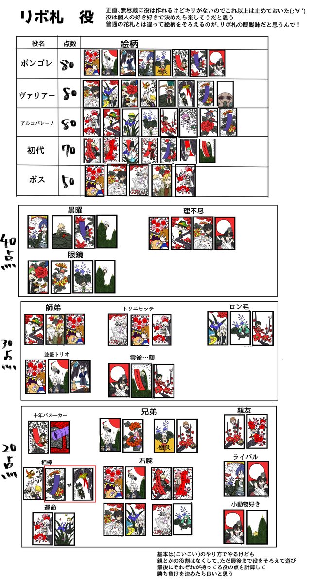 やっば…全部絵ができたよ('ω')楽しそう… 夜に姫将軍とやろうと思います、五枚以上集めるやつ正直集まる気がしない('ω')四つくらいまでかな…もっといっぱい役を作りたかったけどね。スパナとか風太とか…役がないし(´;ω;`)すでに結構多いのにこれ以上多いとごちゃつくから断念した