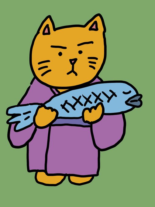 15 341 さてと、お届け物の魚?を持っていきましょか #一日一絵 #猫 23/04/11 15:10