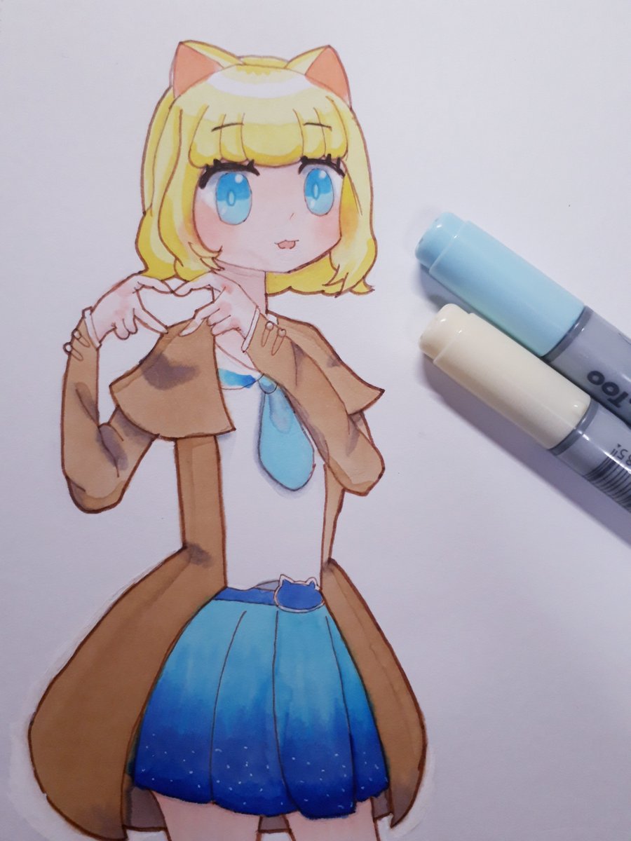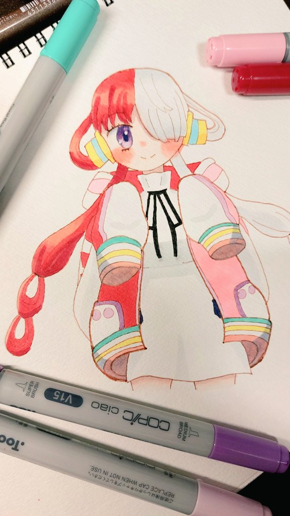 昨日の線画完成したよー!✨ にじみすぎてちょっと変になってるところあるけどきにしなーい(^q^) #アナログイラスト #イラスト #私の絵柄が好みって人にフォローされたい #絵描きさんと繋がたい #コピックイラスト #新人配信者準備中