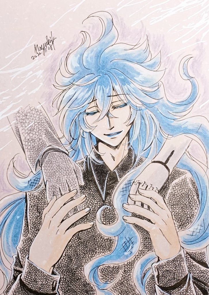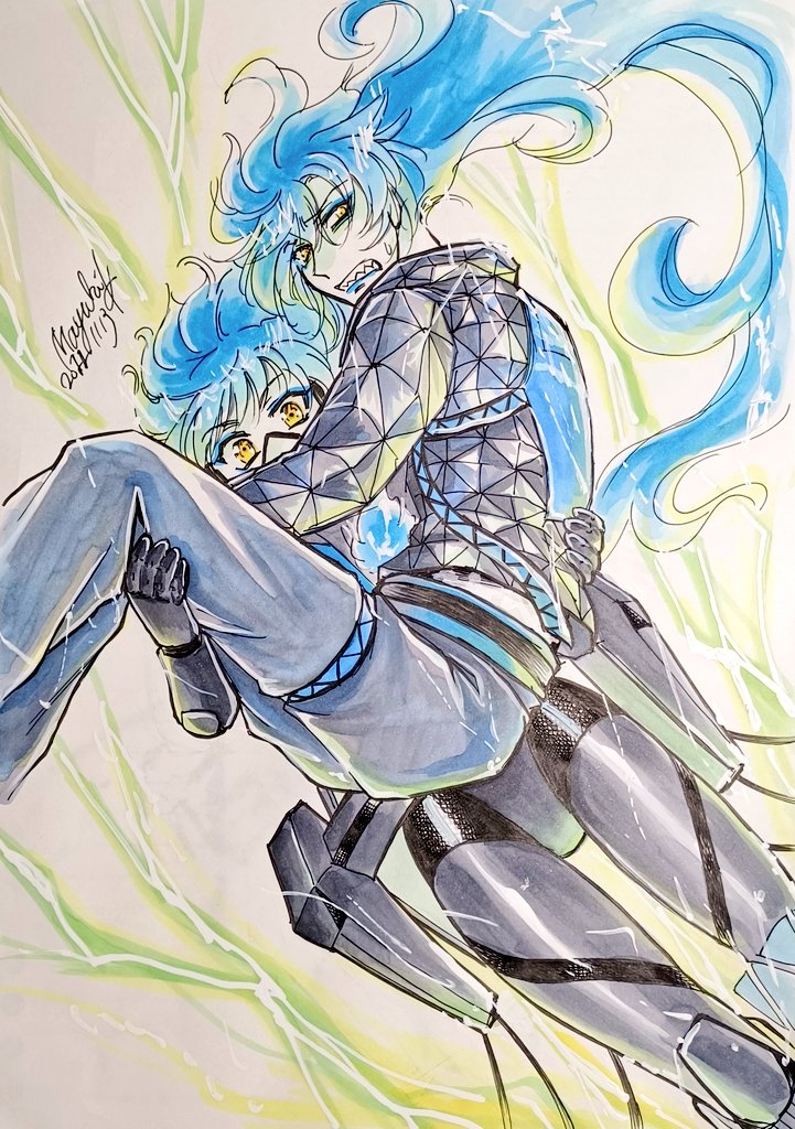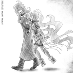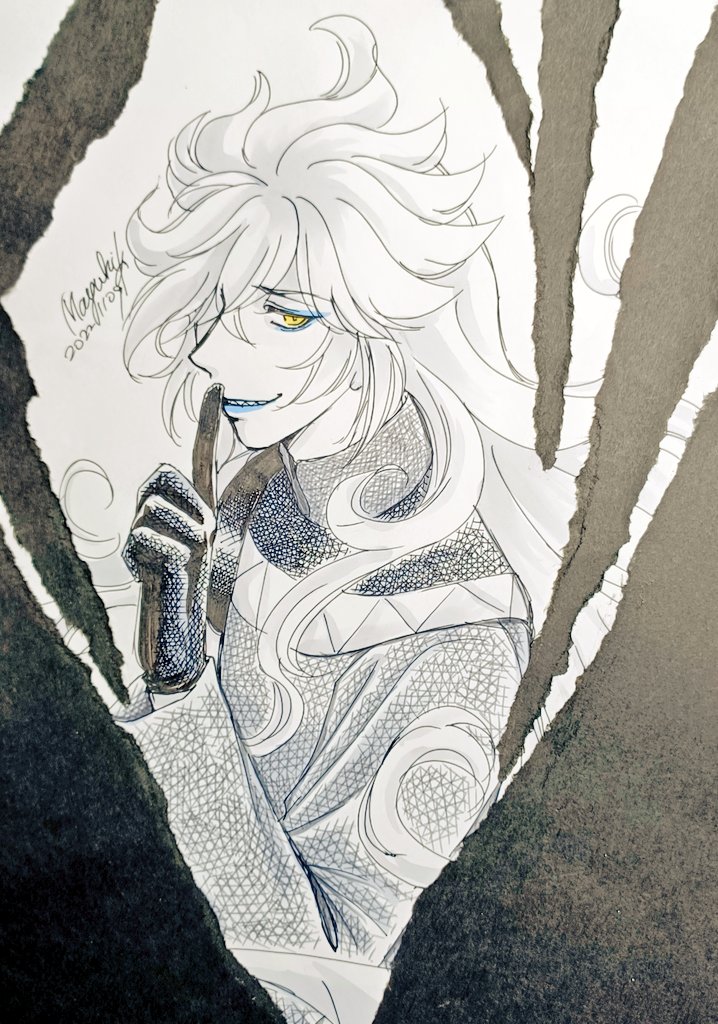 #このタグを見た人はラフ画とその完成絵を見せる 今日はお絵描き出来ないので過去絵で茶を濁す。 これがこうなる。 線画は描いてなかった気がする。 確か、範囲決めの為に塗りつぶした背景色を間違って拾ったのに気づかずに、そのまま進めてこうなった記憶がある。