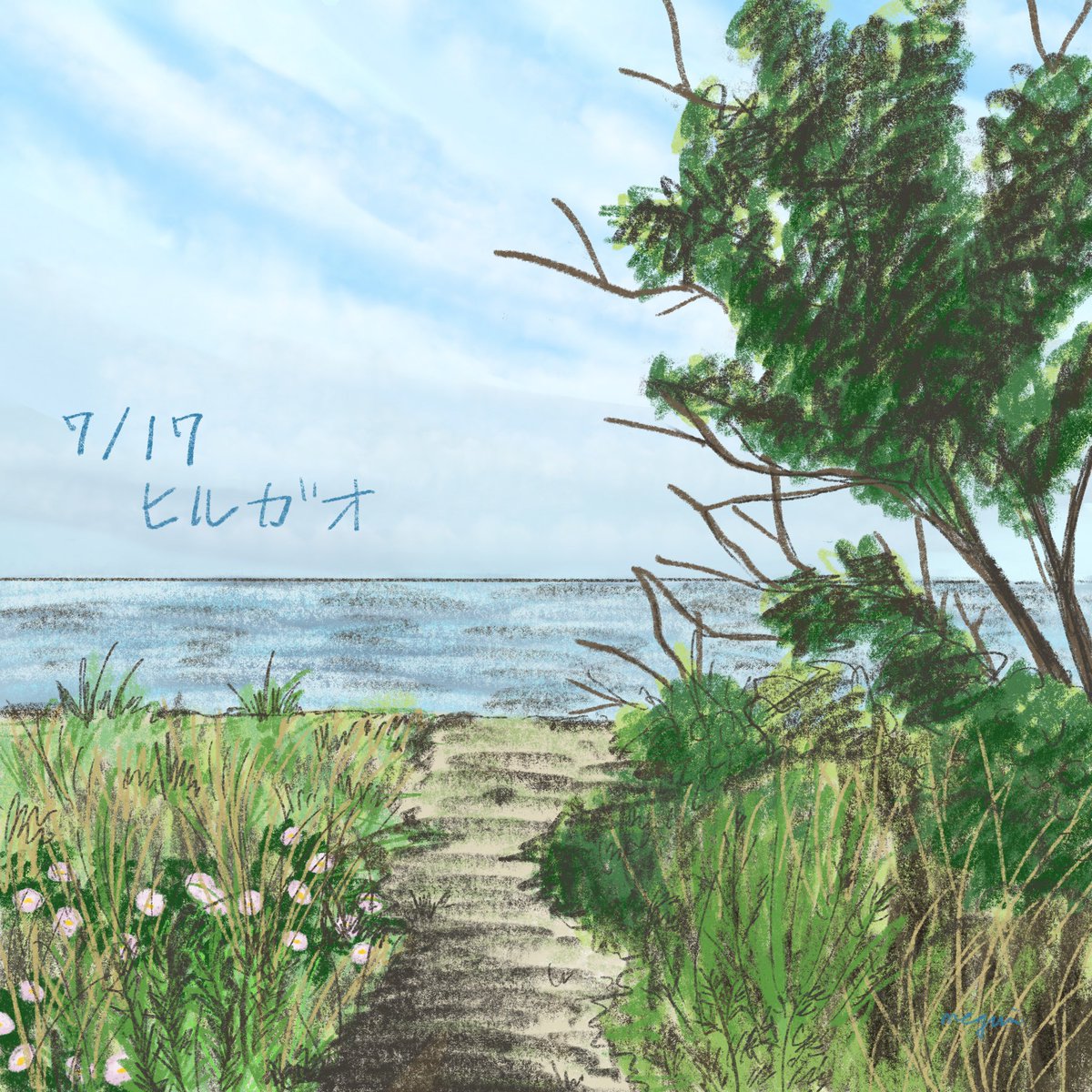 7月17日の誕生花はヒルガオです。花言葉は絆。 今日は海の日。三連休何もしなかったので近所の浜にスケッチに行きました。暑い💦 #スケッチ #イラストレーター #イラストレーション #三連休はフォロワーさんが増えるらしい #絵柄が好みっていう人にフォローされたい