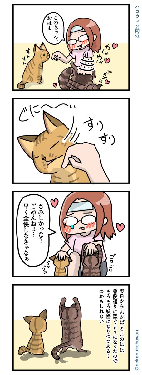 コロナワクチン💉して寝込んだ時の猫の反応。普段ソファでしかゴロゴロしないから、よつば🐱の目線の高さでゴロゴロしたのが楽しかったらしい🤔#猫 #漫画 #猫好きさんと繋がりたい #イラスト好きさんとつながりたい