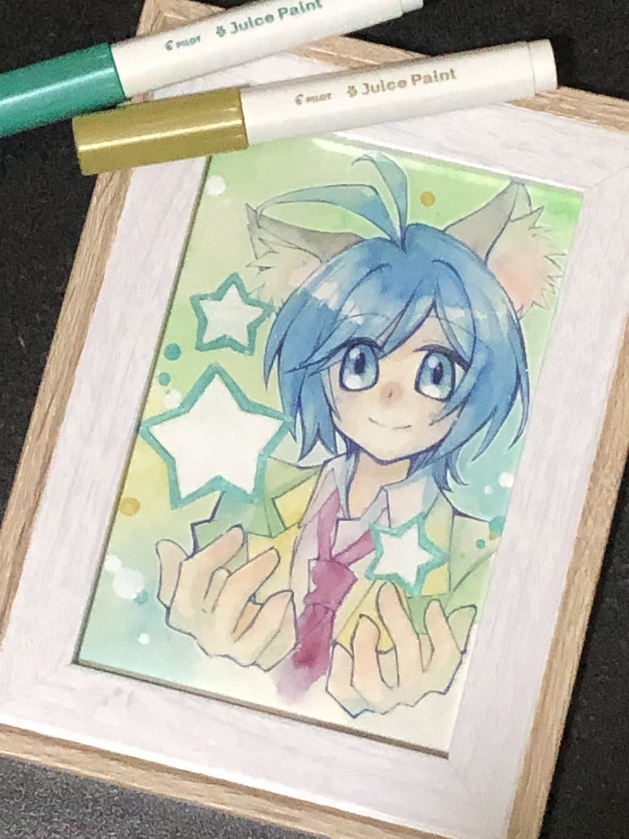 こちらのタグでリクエストいただいていた、SB69のレトリーちゃん描きました!フンスフンス=3 サンフラワー豆色紙/水彩色鉛筆・透明水彩 twitter.com/nekonoki3310/s…