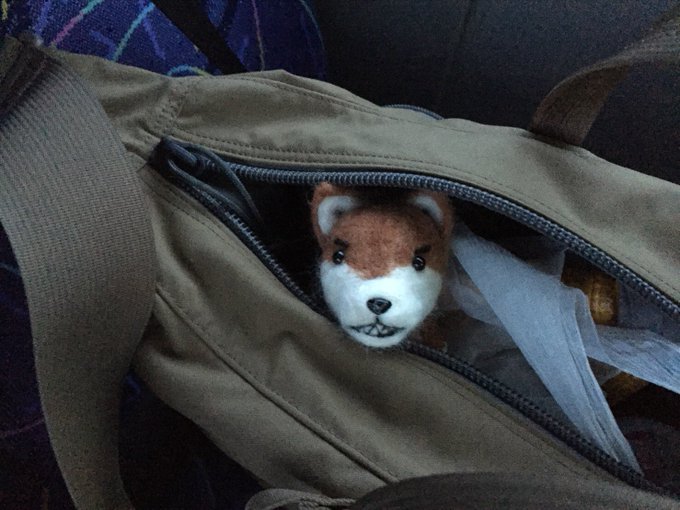 出張かばんの中からコンニチハ #シバイヌ #柴犬 #羊毛フェルト #イラスト