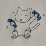 0 9 眠いけど筋トレ 座りながらだけどダンベル #猫 #イラスト #羊毛フェルト #筋トレ 21/04/12 10:22